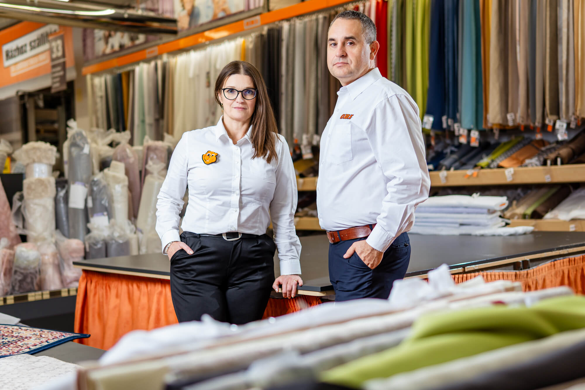 Az egy naposra tervezett fotózáson a lenti áruházi portréképeken és hangulatképeken kívül egyszínű egységes portrékat is készítettünk a kollégáról, amit az üzleti kommunikációban tudnak felhasználni.